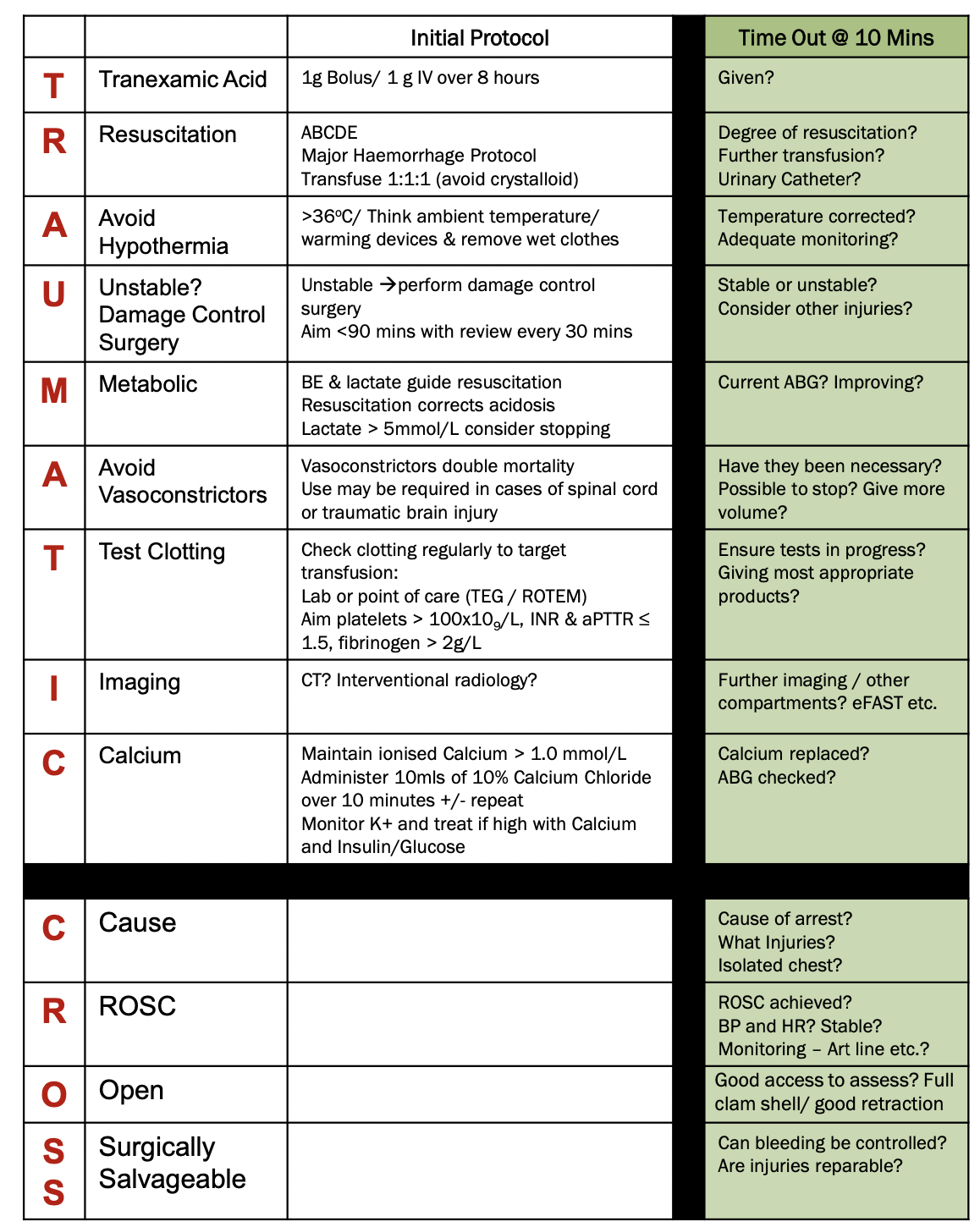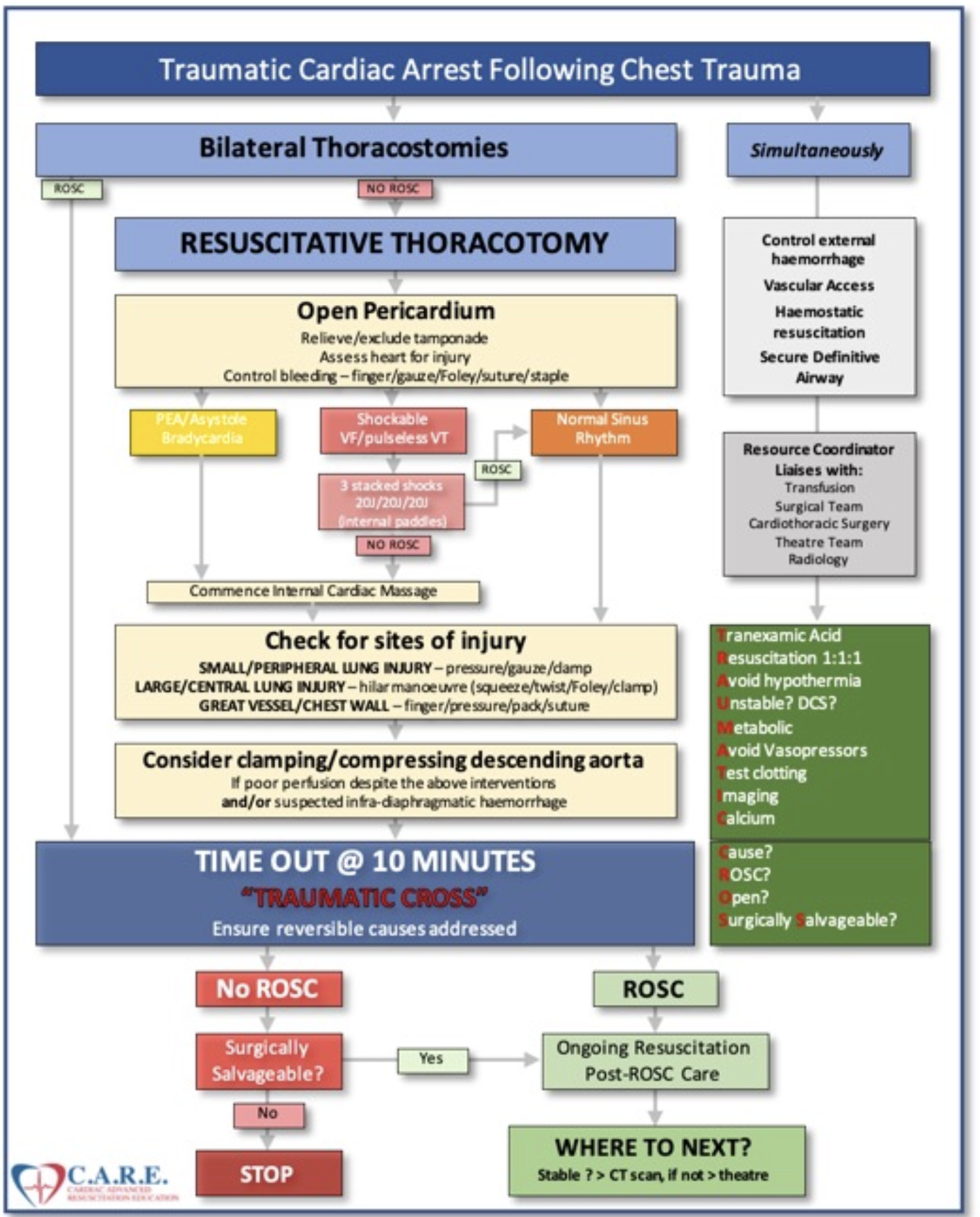 See the official RCEM Best Practice Guideline on Traumatic Cardiac Arrest.